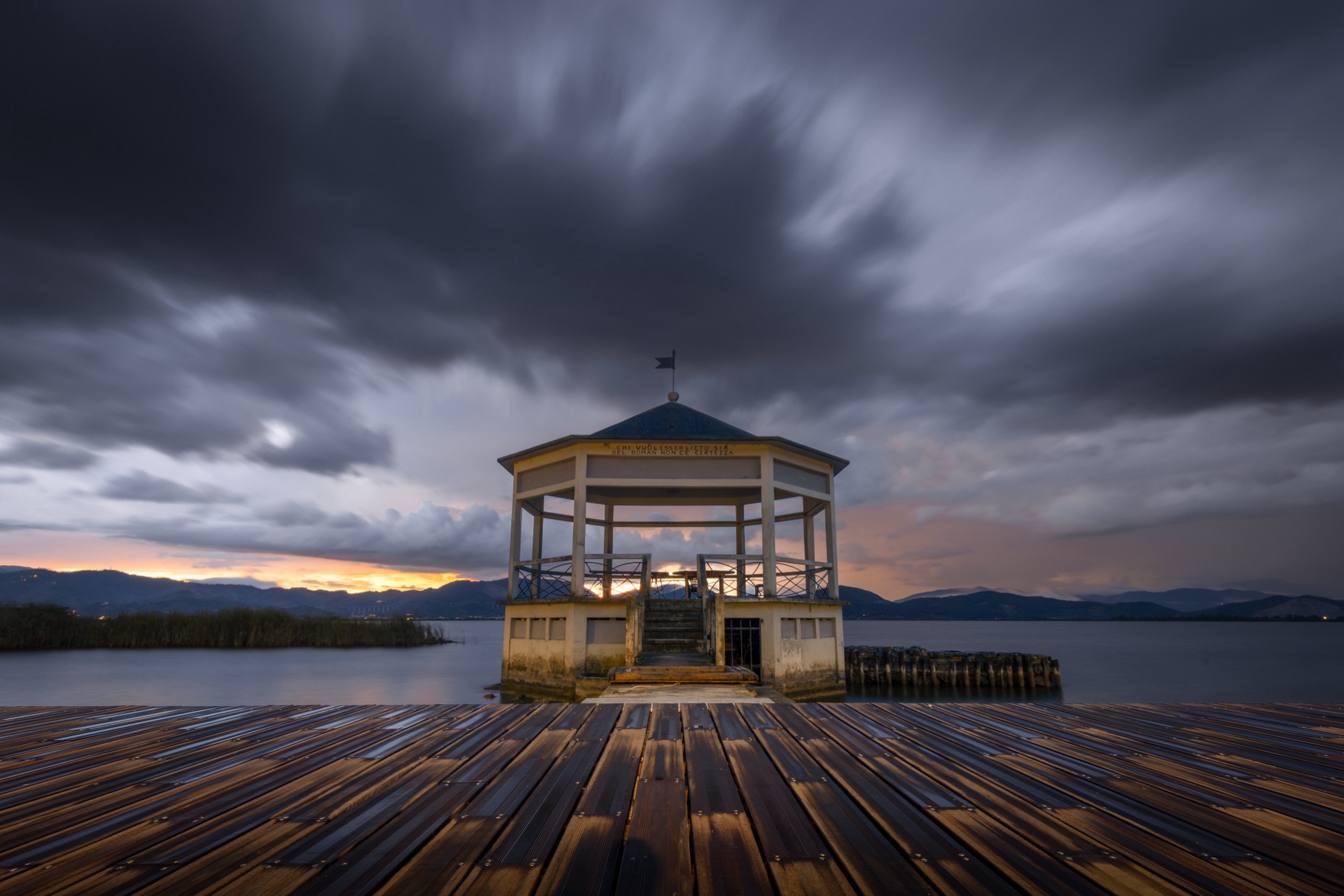 Appena possibile, siamo rientrati alla macchina ed abbiamo cambiato location, nella speranza di poter scattare al temporale senza essere nel punto esatto dove pioveva. Abbiamo scelto di dirigerci verso Torre del Lago Puccini, uno dei posti a cui sono più legato. Mi ha sempre regalato grandi scatti, ma stavolta non avevo aspettative cosi alte. Ed invece…