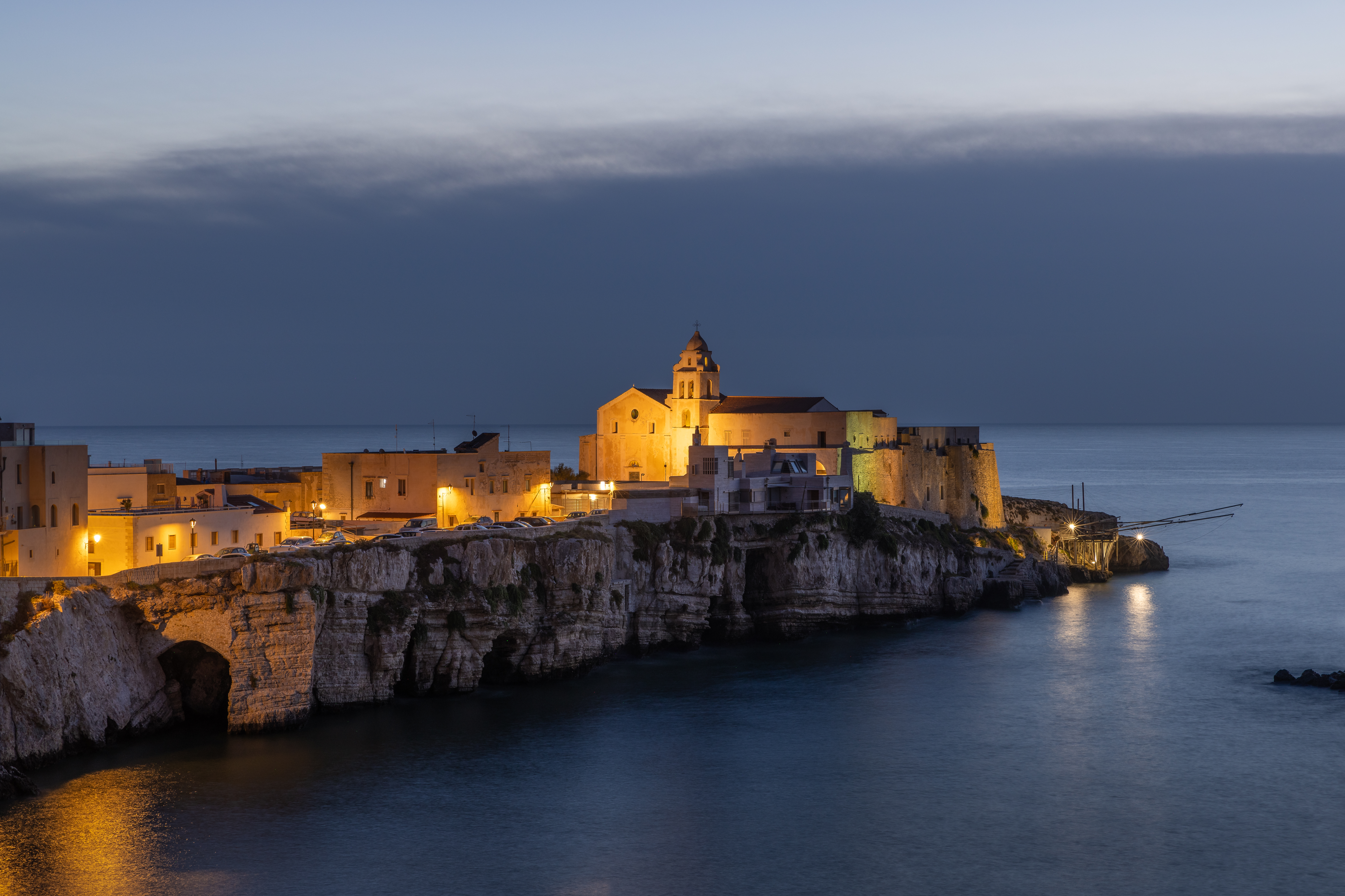 Uno dei soggetti più iconici della mia uscita fotografica sono stati i trabucchi, antiche macchine da pesca costruite su palafitte che si ergono lungo la costa del Gargano. Sono riuscito a fotografare queste strutture nelle ore più tranquille del giorno, quando il mare è calmo e i trabucchi si fondono con l’orizzonte. Con le reti tese e le lunghe braccia di legno proiettate verso il mare, questi giganti raccontano la storia di una pesca tradizionale e sostenibile, radicata nella cultura locale. Alcuni trabucchi sono ancora funzionanti e spesso, nelle prime ore del mattino, è possibile vedere i pescatori al lavoro, un momento perfetto per immortalare la quotidianità di un mestiere antico.