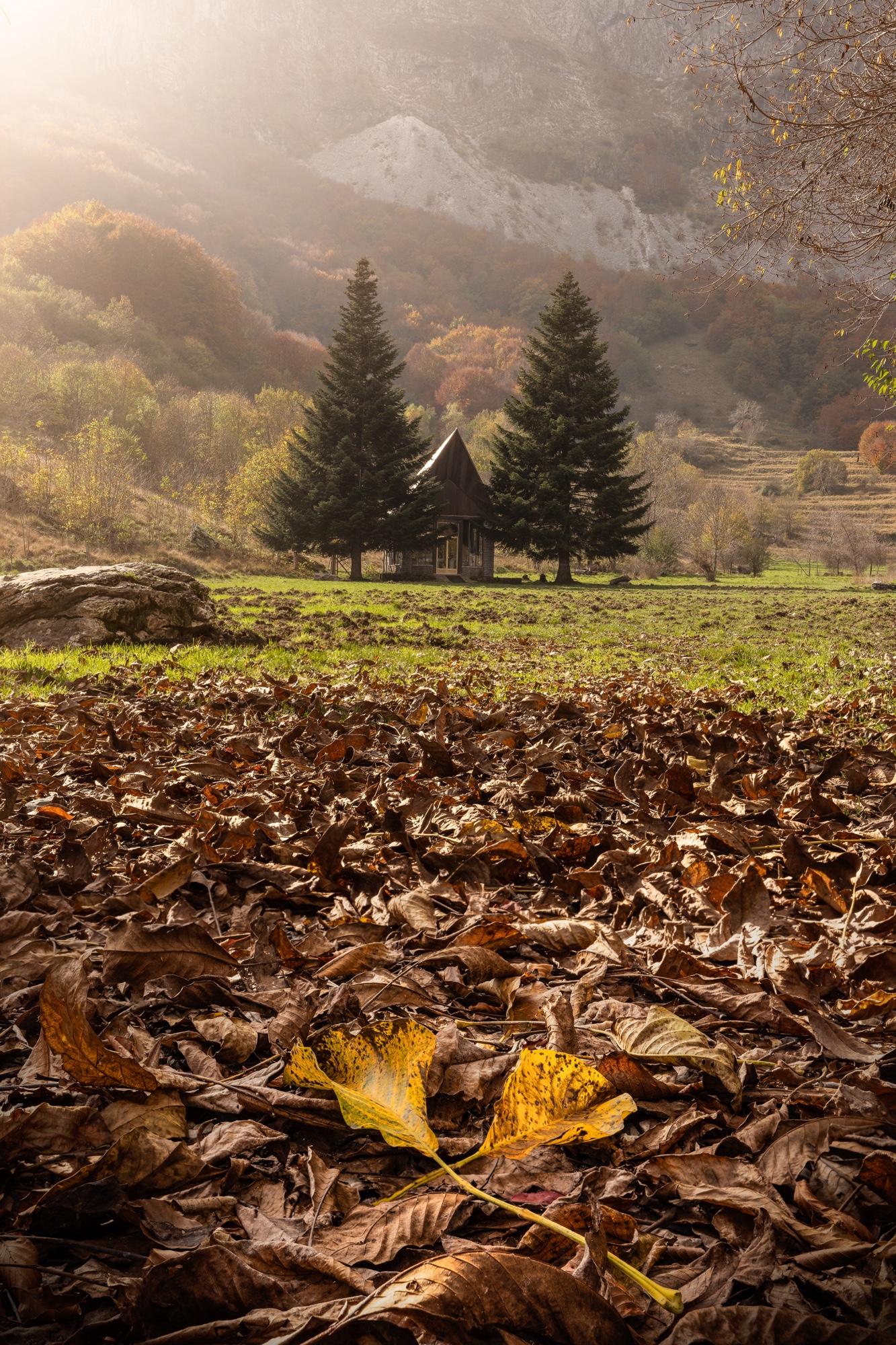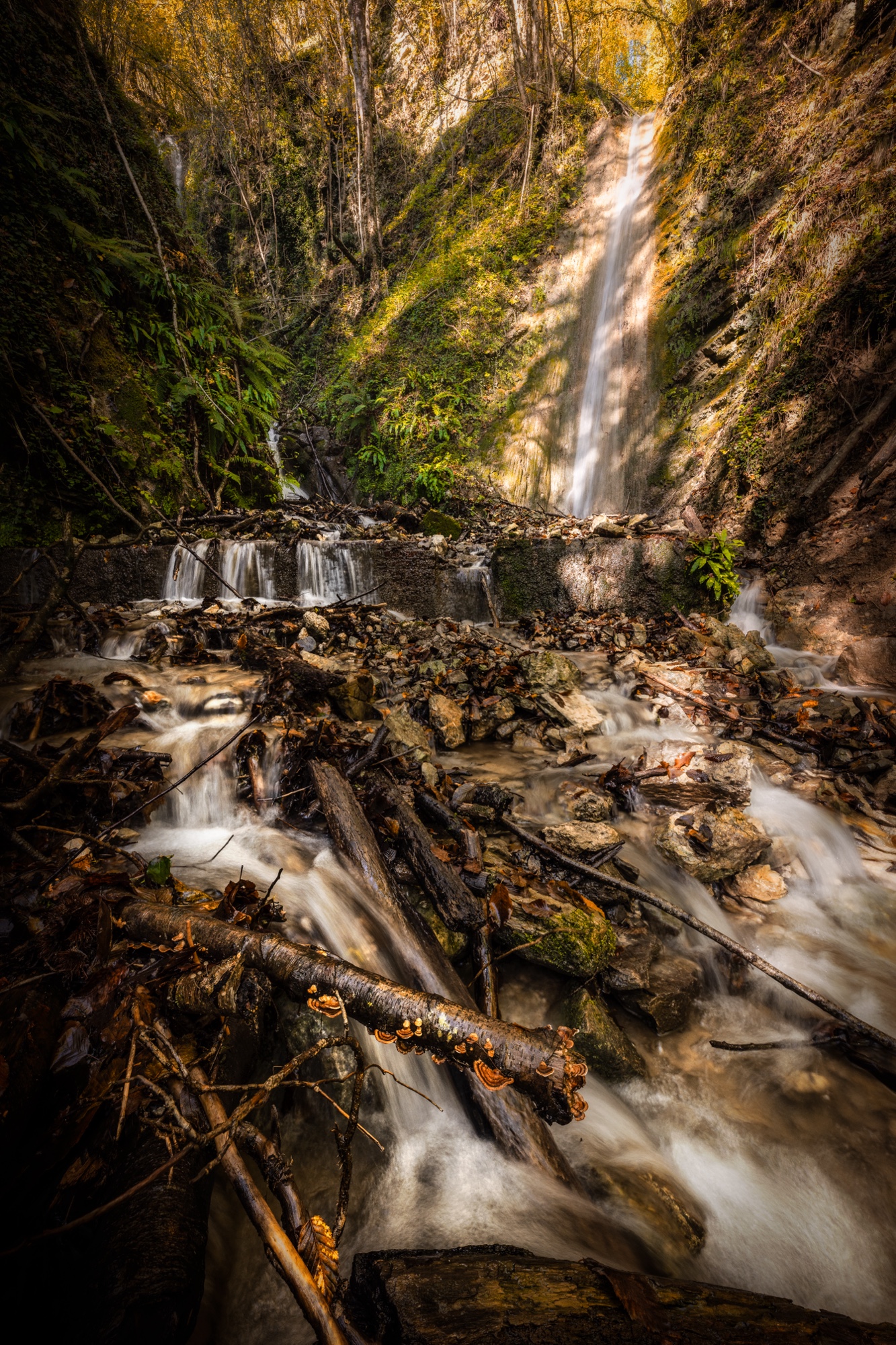 I continue toward an unknown destination, exploring hidden views, waterfalls, and streams peeking out between the trees. I reach Campocatino, a shepherds’ village, which this morning seems practically deserted. Not a soul in sight. Colors shift from deep red to bright yellow. I take a few quick shots here as well and carry on with my carefree wanderings until eventually heading back.