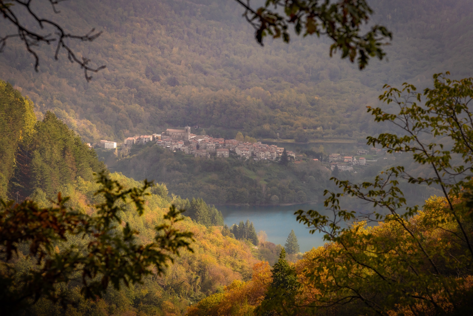 Lake Vagli, with its submerged village visible only at certain times, adds a touch of mystery to this already enchanting place. I imagine the stories this body of water might tell, of lives and memories hidden below. As the sun begins to rise, casting warmer tones across the landscape, my lens continues to capture the magic of this autumn morning in Garfagnana, an experience that will remain etched not only in my camera’s memory but also in my own.