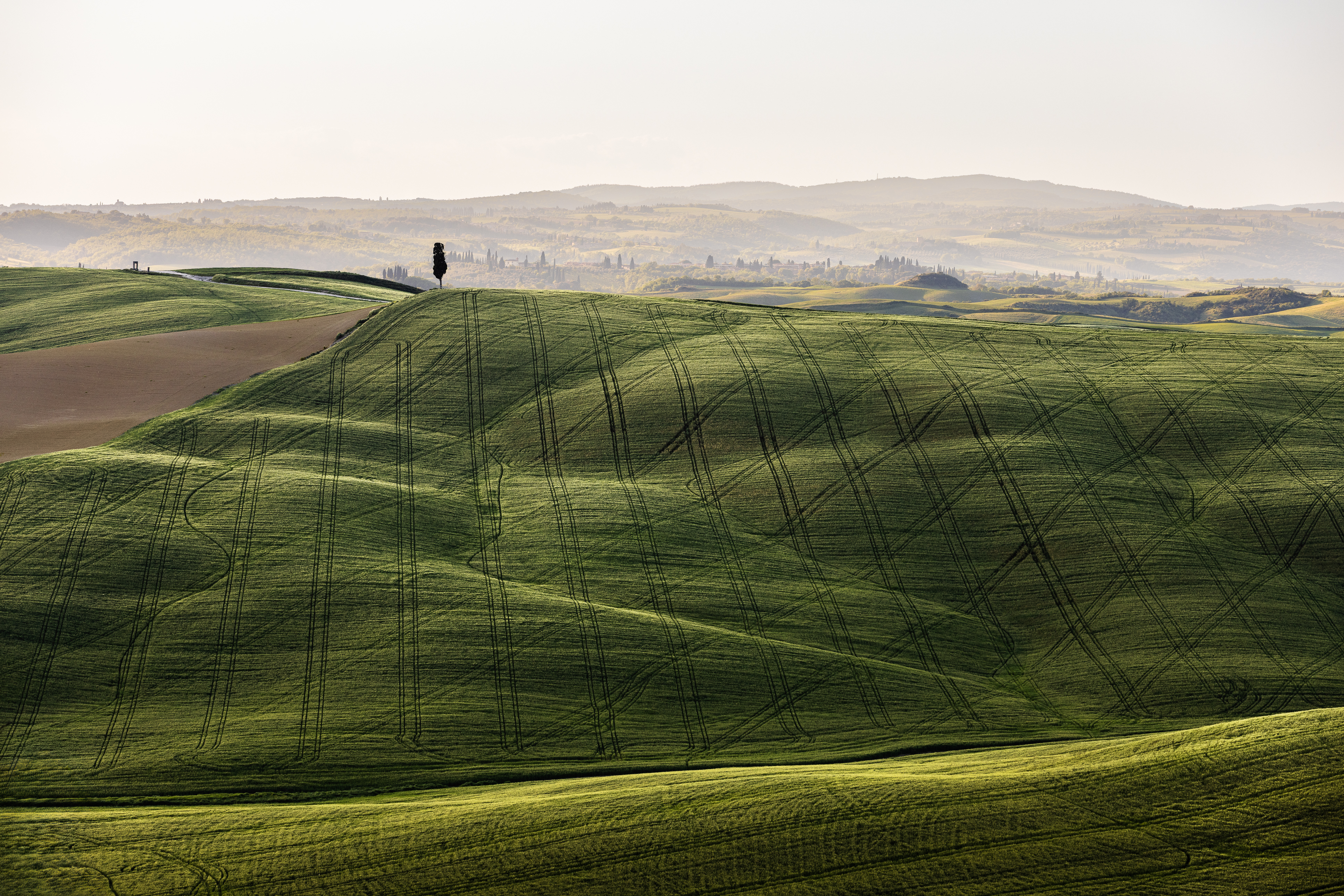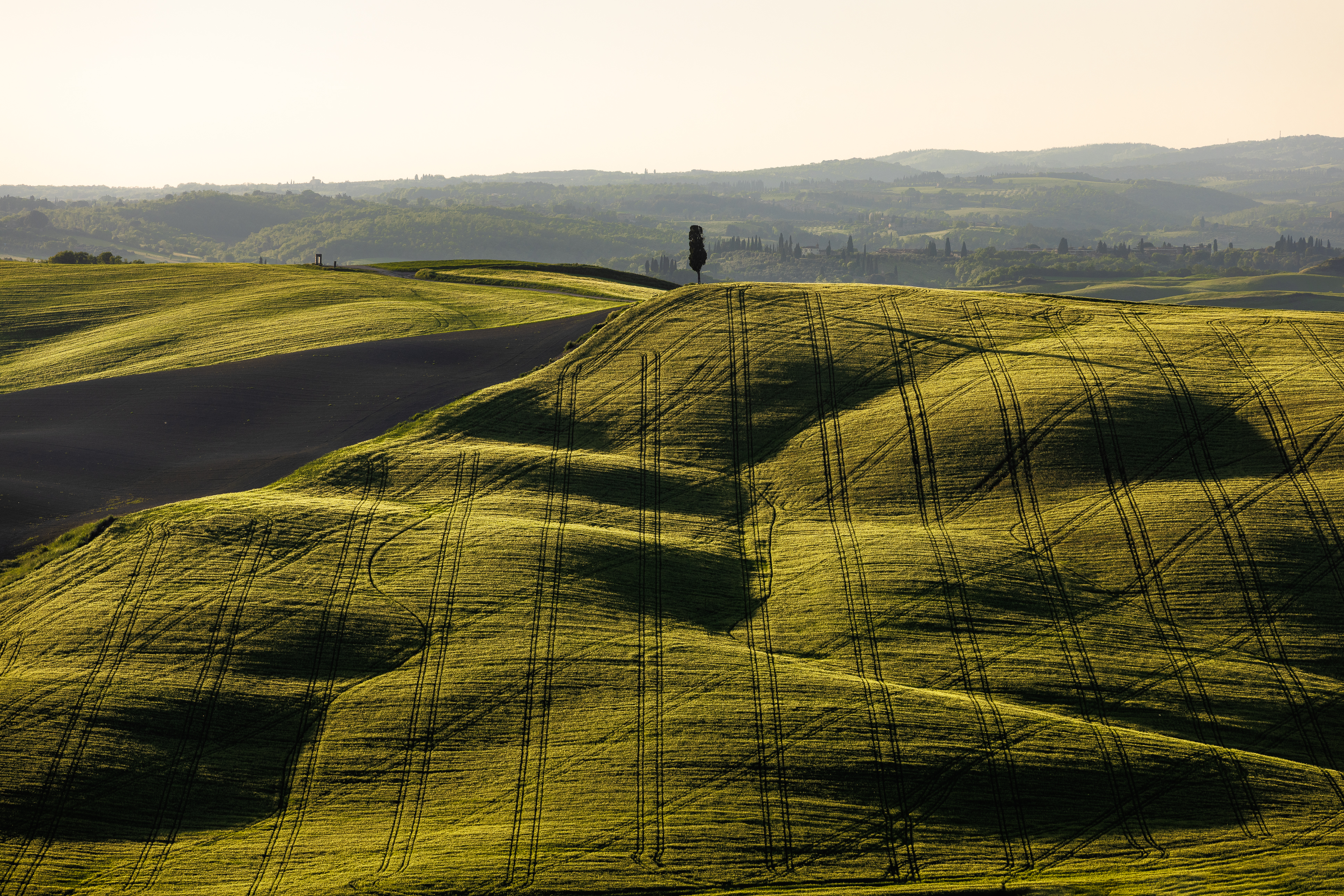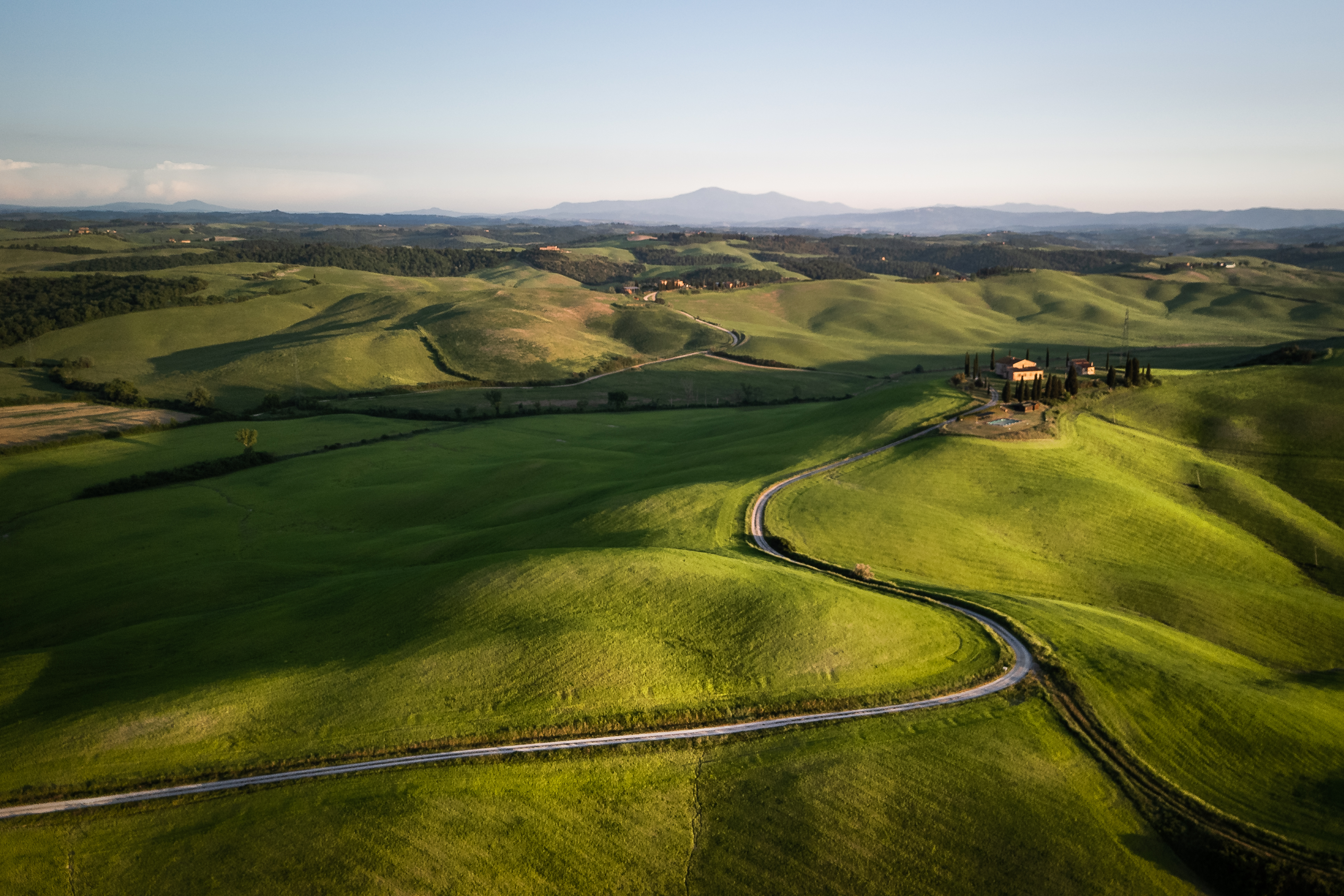 Torno alla base, soddisfatto come non mai. Il viaggio riprende, in direzione delle Crete Senesi. Una location che ho visto solo di passaggio finora. Non ho mai assaporato la bellezza di queste colline. Immortaliamo alcuni spot fotografici interessanti, che, con la luce radente, rivelano contrasti davvero fantastici. Ci fermiamo a Staffolino al tramonto. Il sole muore sopra i campanili di Siena. Quale occasione migliore di scattare con il teleobbiettivo a questa città? Un volo veloce con il drone e via a letto.