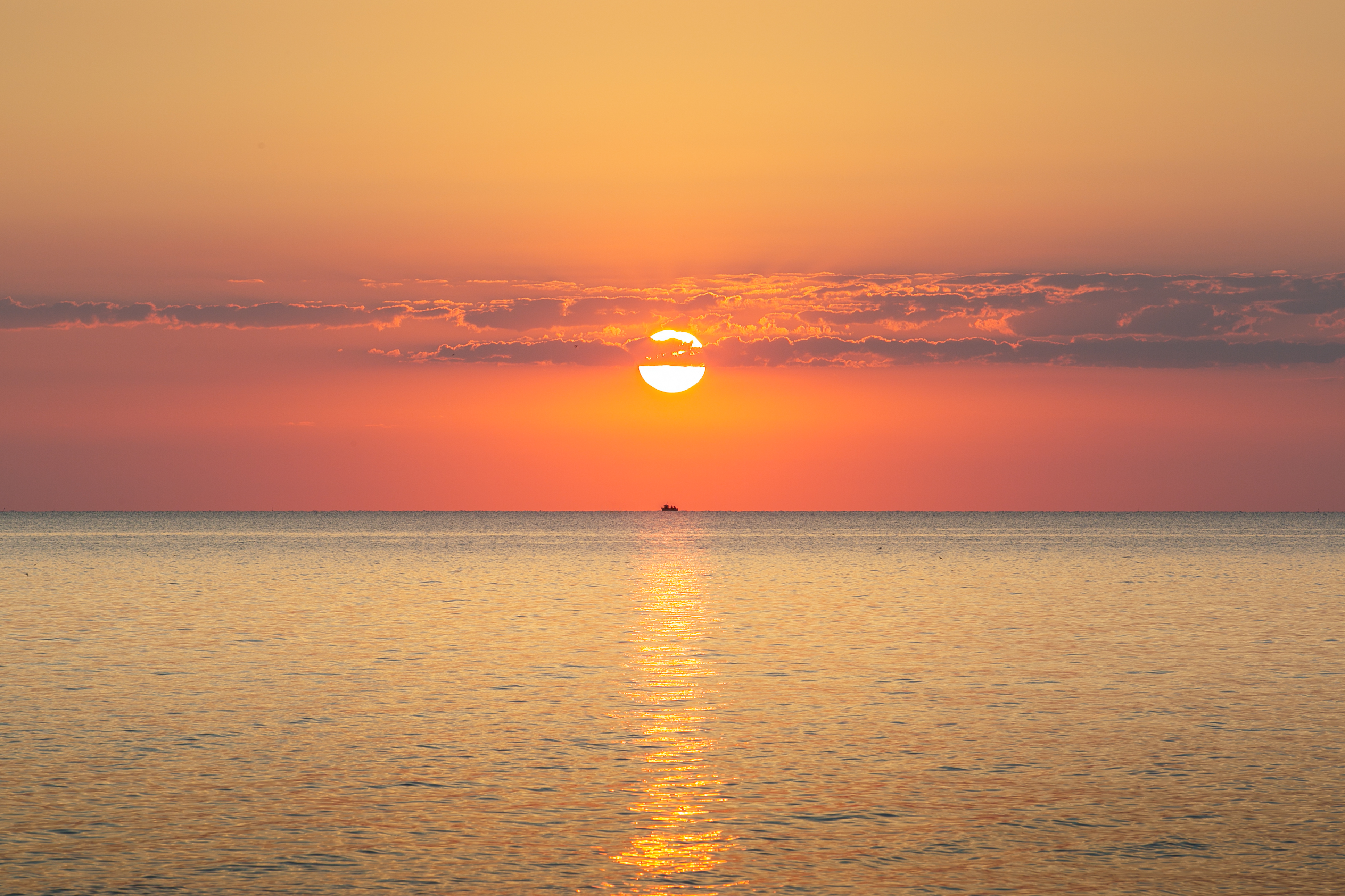 The most incredible part was yet to come. As time passed and the sky brightened, it was slowly starting to lighten in the east. Obviously, while we were there, we decided to wait for the sun, to see if, despite the very heavy clouds in the sky, it had risen. Of course!! The sky literally began to be painted in a thousand shades. A fiery orange changed from shades of yellow to red up to the violet veils of the clouds, in contrast with the bluish of the sky which passed inexorably from night to day. A true riot of colours!