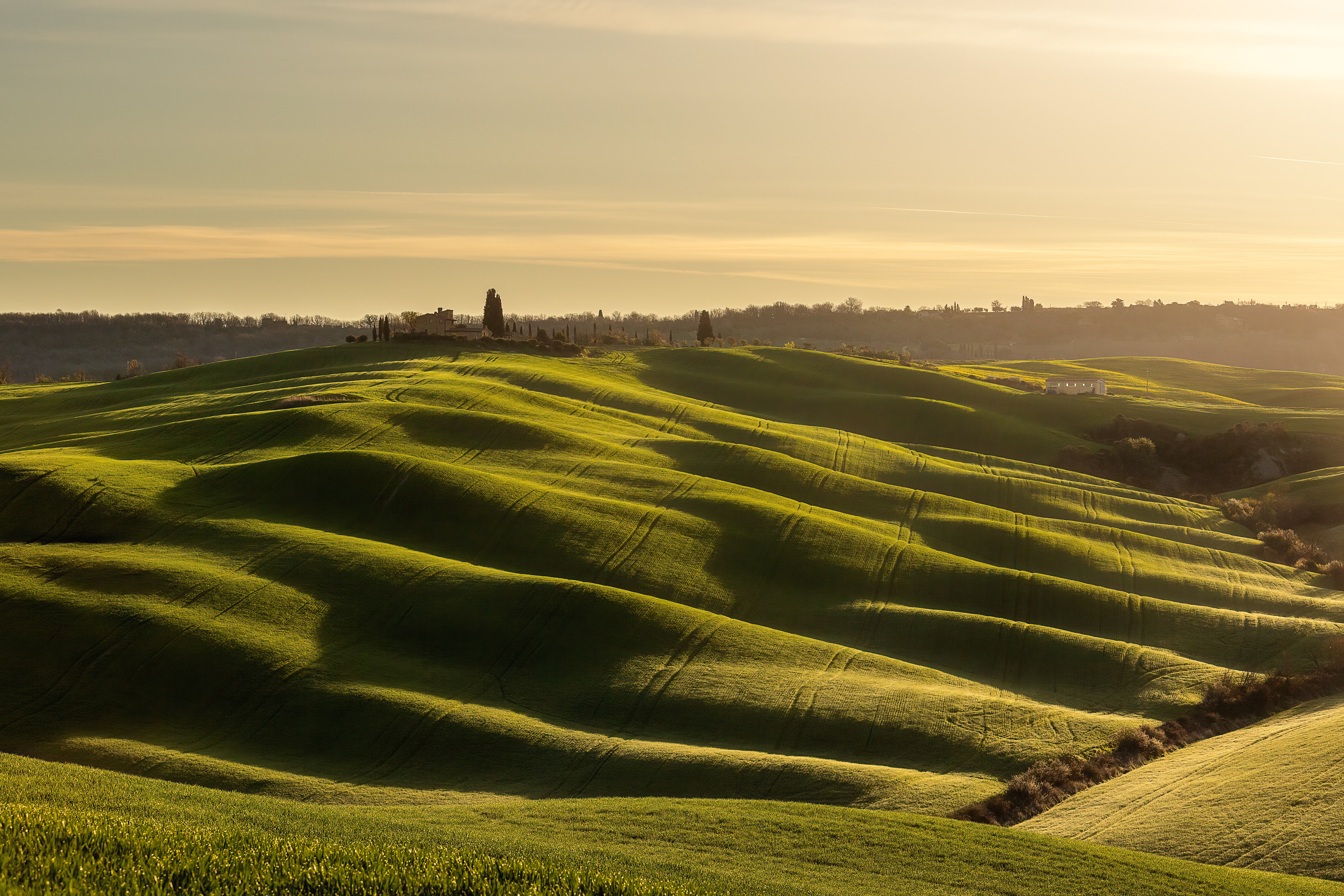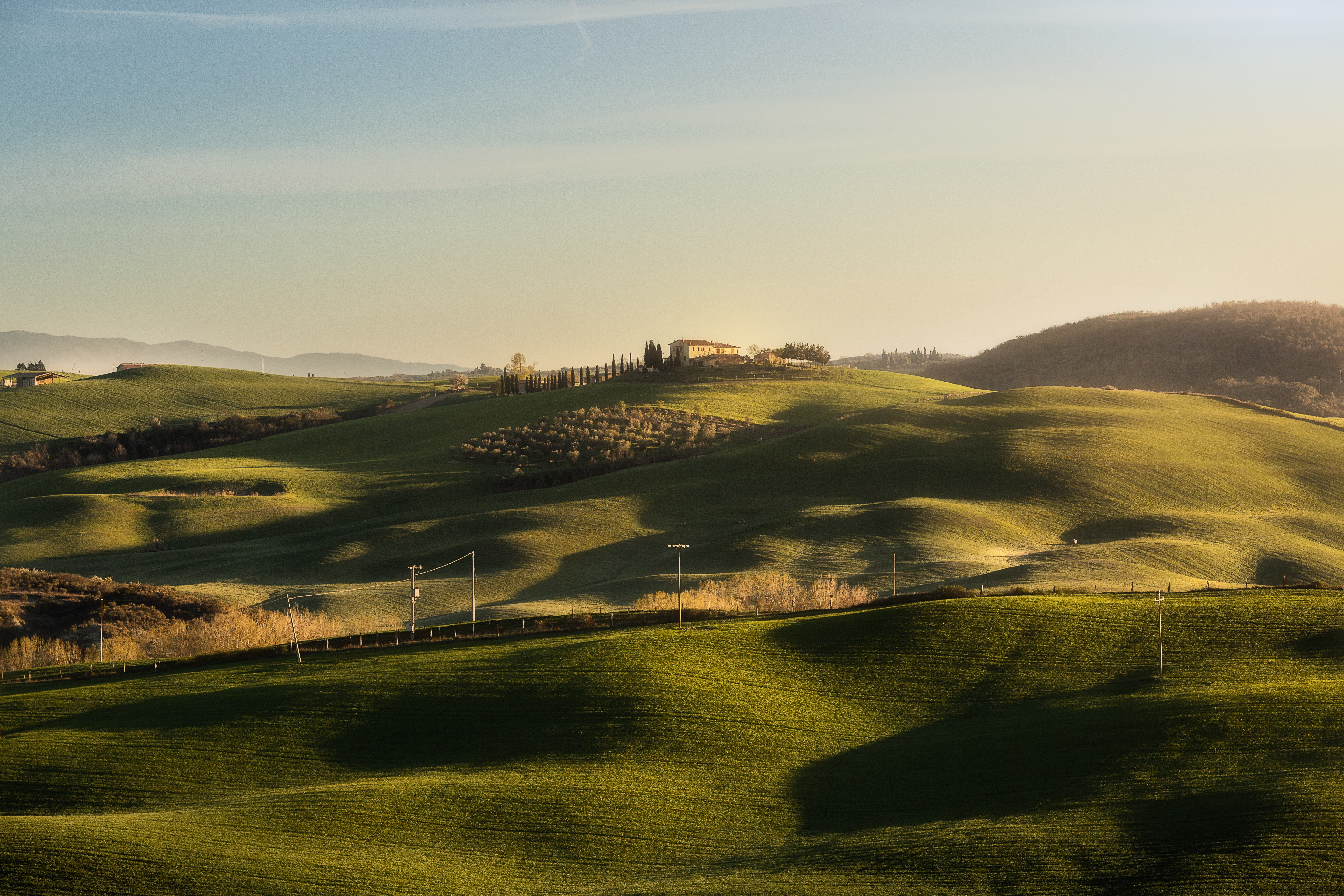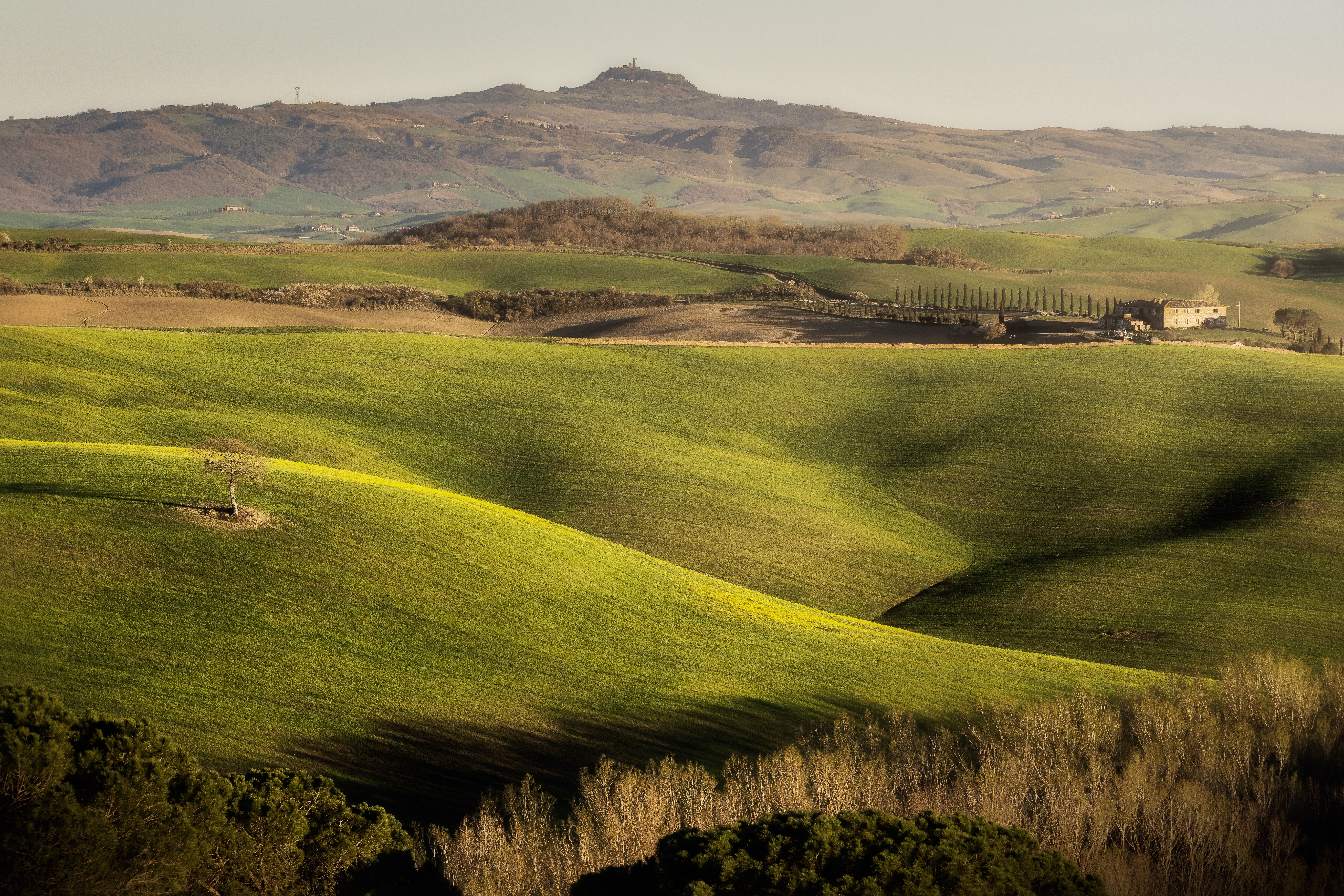 Il periodo dell’anno che tuttavia preferisco per tornare a fotografare qui è sicuramente la primavera. Campi vastissimi che si vestono di infinite sfumature. Il verde del grano e il giallo della colza avvolgono i casolari in pietra che svettano solitari sulle colline. La luce radente che accarezza le colline durante le prime ore dell’alba e le ultime al tramonto, modifica il paesaggio istante dopo istante.