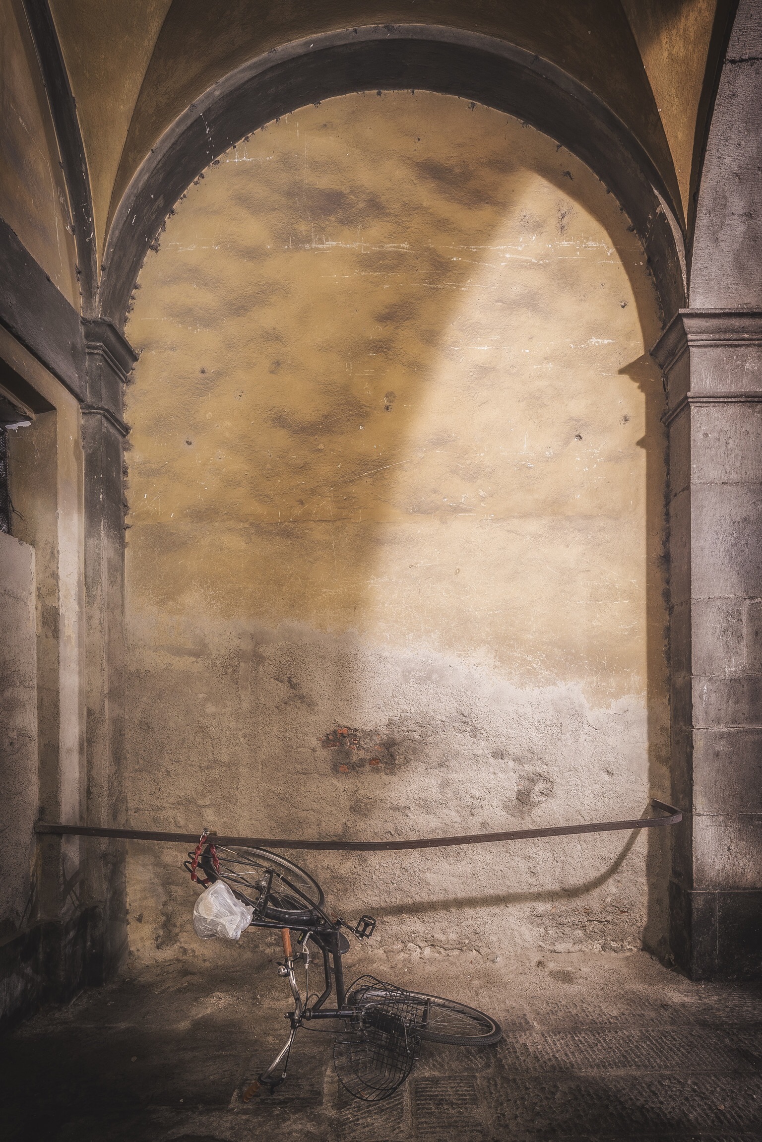 The intent is to tell our city when, in the evening, everything stops. Paying attention, the only protagonists of the scene are bicycles. Alone, silent, but each one tells a story. Whose will they be? Of a lawyer? Of a shop assistant? Of an elder or a child who is now sleeping? Perhaps a priest … seen how many churches there are, or maybe who knows. However, each has something to tell us or let us imagine …