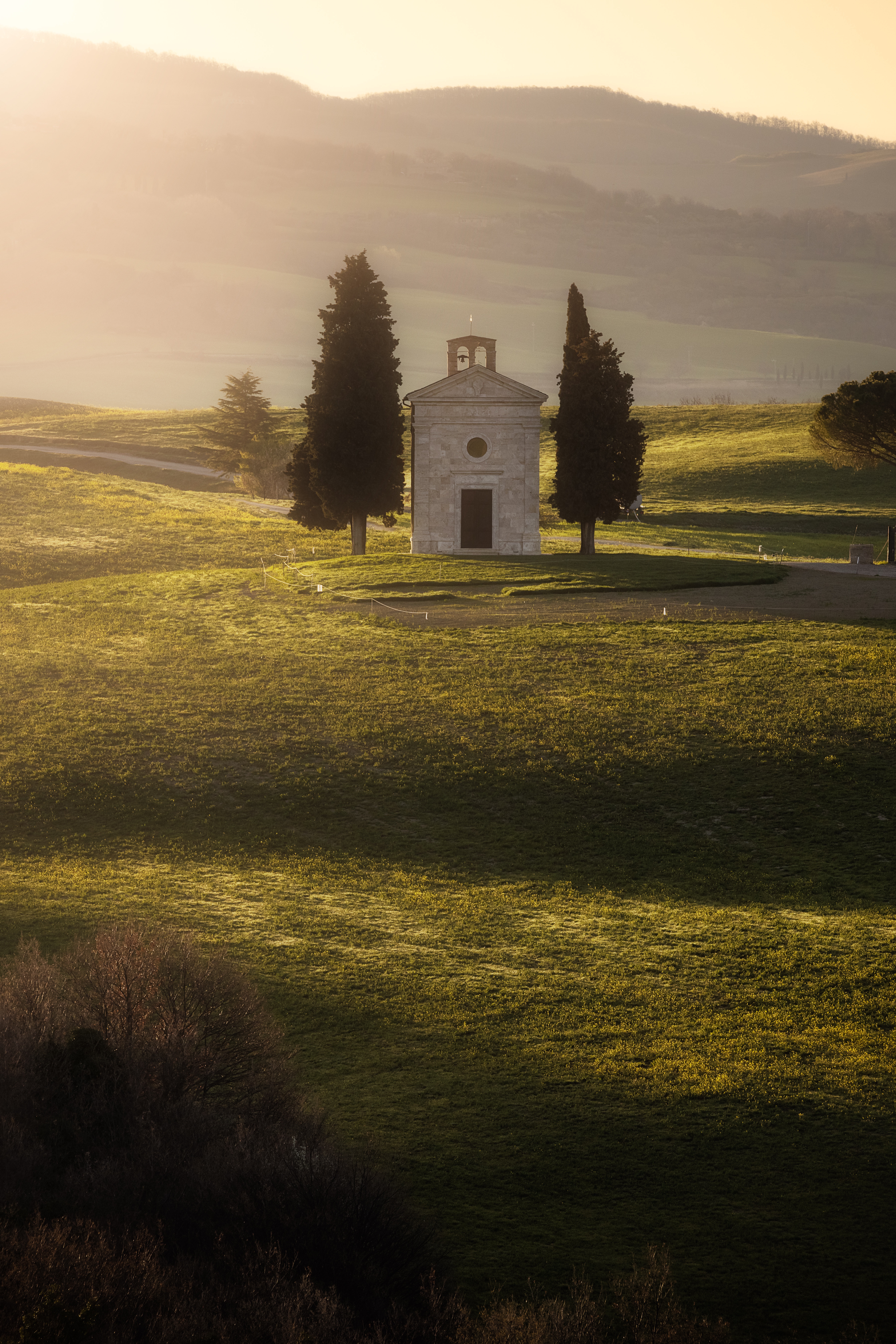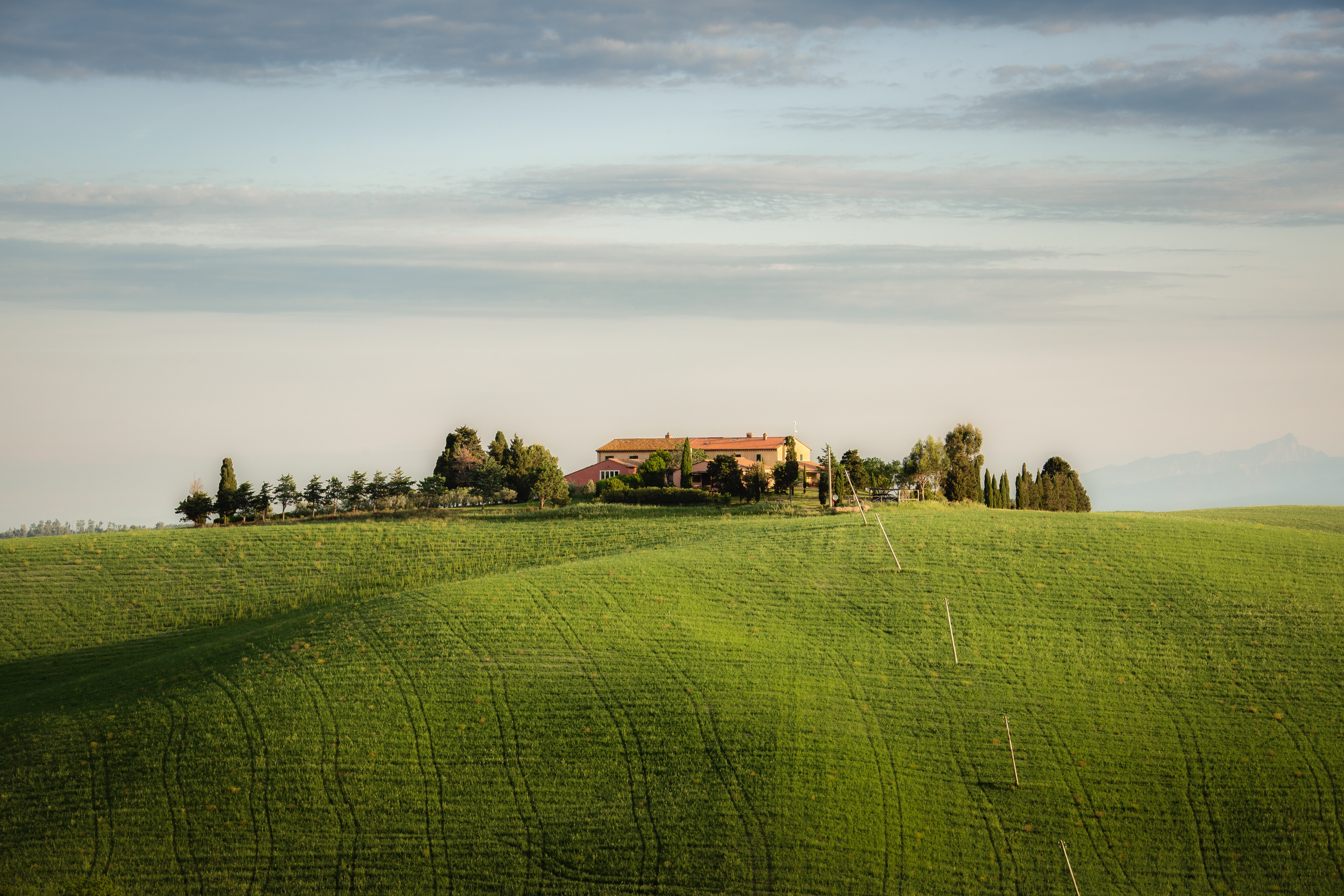 Men plow and work the land with their machinery. They appear as tiny little creatures that paint these immense colored canvases. Crafts, now almost lost, here resurface. The farmhouses are alone, powerful, far from each other. A feeling of infinite space envelops you with every step you take.