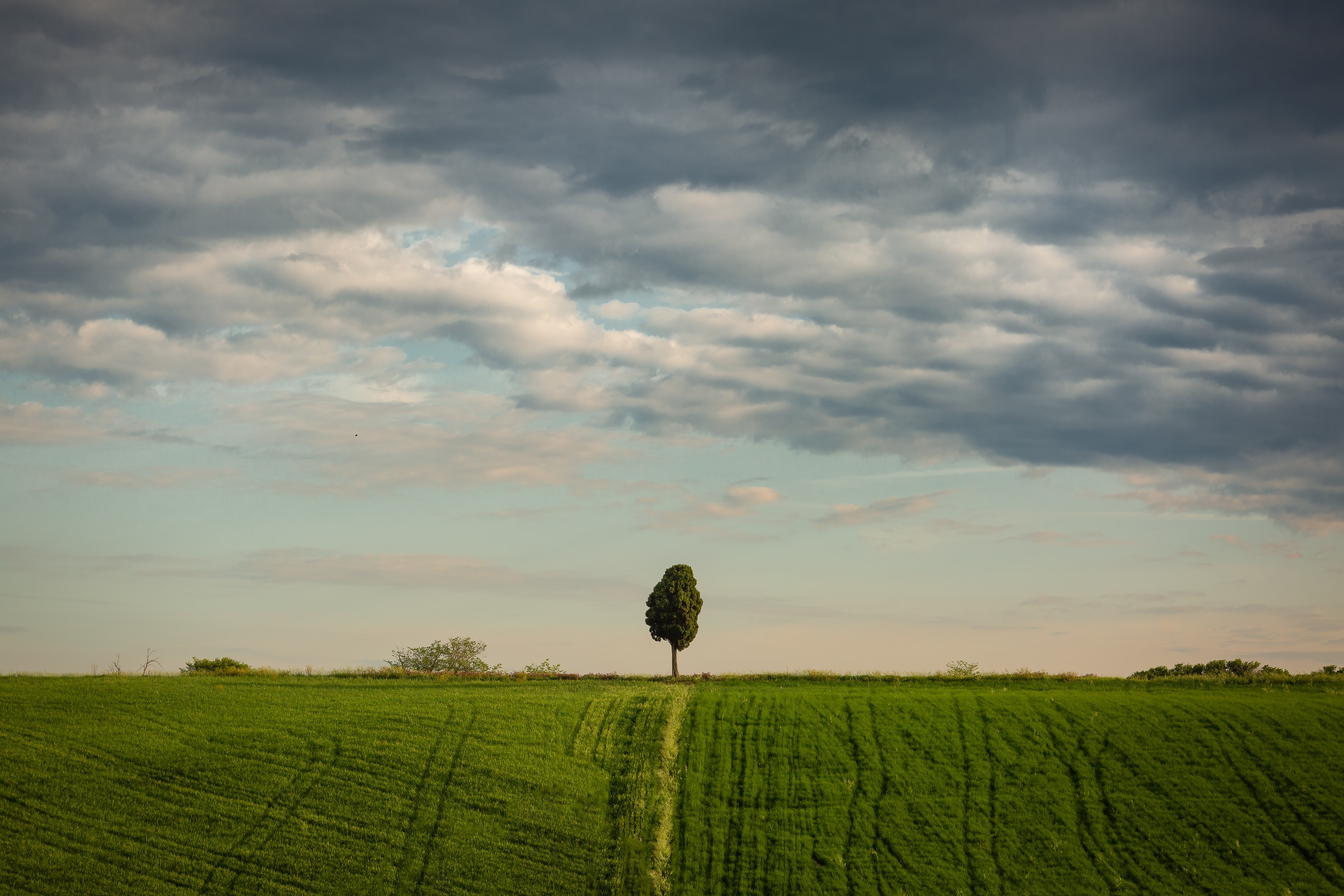 Let’s change location again. A small hill with a cluster of cypresses on top caught our eye on the outward journey. We do a few drone flights to film the landscape from another perspective. The light is not good at all now. The morning passed quickly, and the sun is now high, the shadows are hard and the contrasts are too accentuated. So we decide to go back. We have lots of photos.
