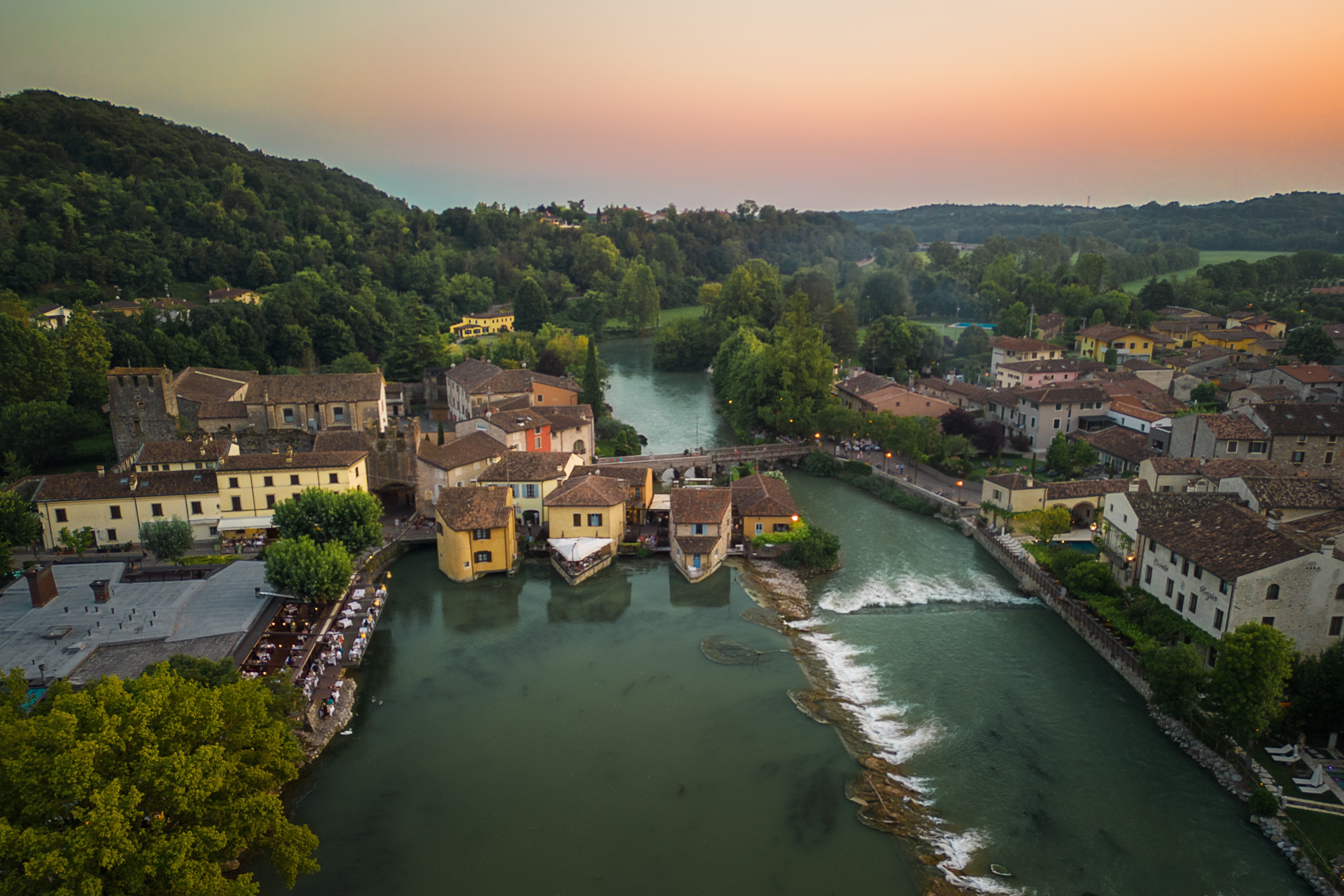 I savored this place at all hours. At dawn you can watch the sun rise between the Visconteo bridge and the Scaliger Castle. In the morning the silence is incredible, you hear the sounds of flowing water, the chirping of birds and the wind rustling through the plants. The air is fresh and crisp. In the afternoon, however, the village fills with life. Tourists wander up and down the streets looking for a nice photograph to take, an aperitif to quench their thirst, or simply a few minutes of relaxation on the banks of the Mincio. In the evening it is even more impressive. At sunset, the first lights come on, the restaurants fill up with patrons for a romantic dinner by the river, tasting the local delicacies, or enjoying the delicate cool of the evening.