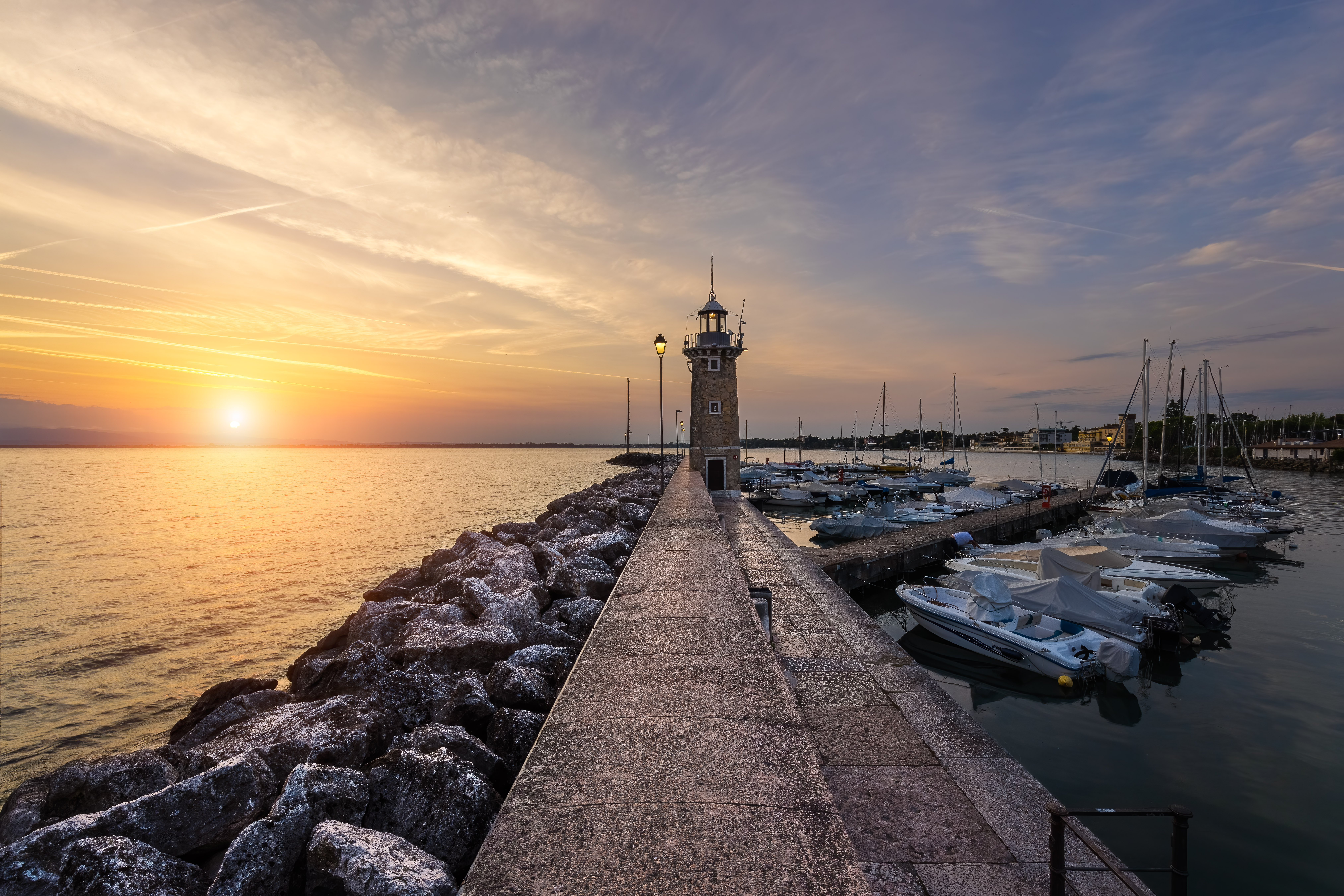 The word “Lake” for me means more relaxation and silence than anything else. And this place, at dawn, offers real pearls. Moments in which it’s just you and the camera, alone there in front, greeting the new day that is born. The port area is wonderful, with its beautiful lighthouse, the cliff, the lights of the street lamps, the water of an incredible blue-green, the silent boats all in a row. It truly deserves so much. I waited for the sun right under the lighthouse, and the images are fantastic. Even from above with the drone it offers real joys.